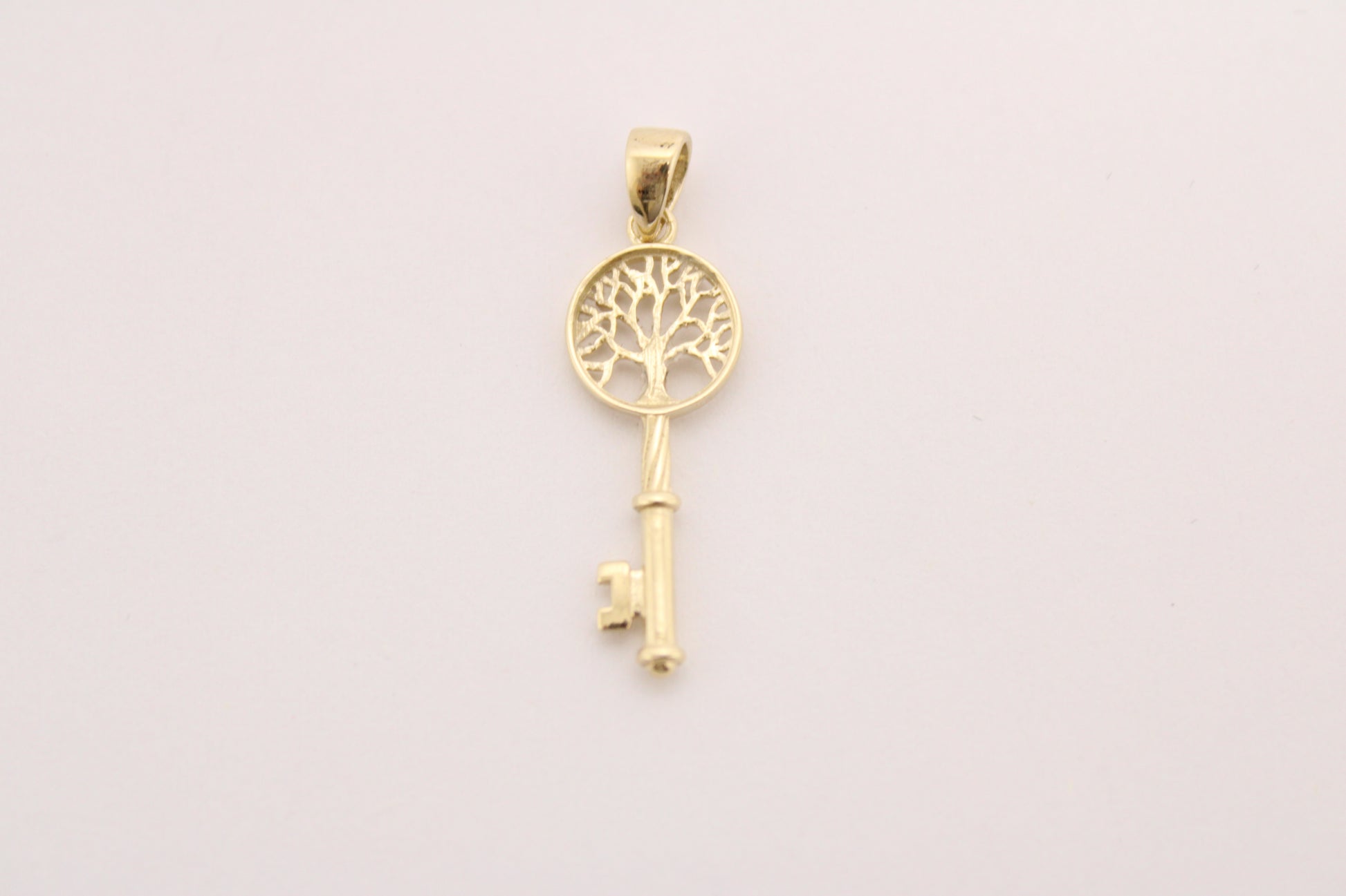 14K Gold Key Pendant with Tree of Life