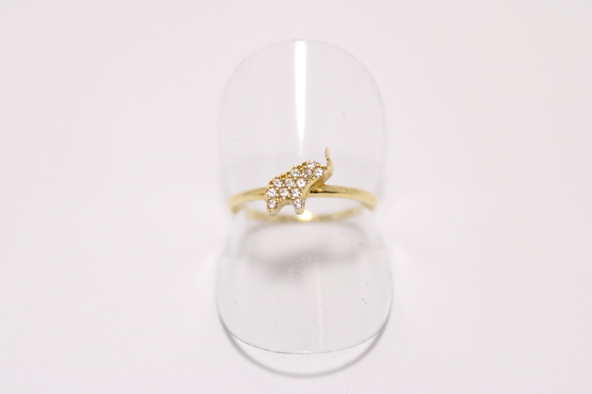 This elegant 18K gold elephant ring is adorned with sparkling zircon stones, symbolizing strength, protection, and good fortune. Its detailed design and radiant gold finish make it a unique piece, perfect for everyday wear or as a meaningful gift.