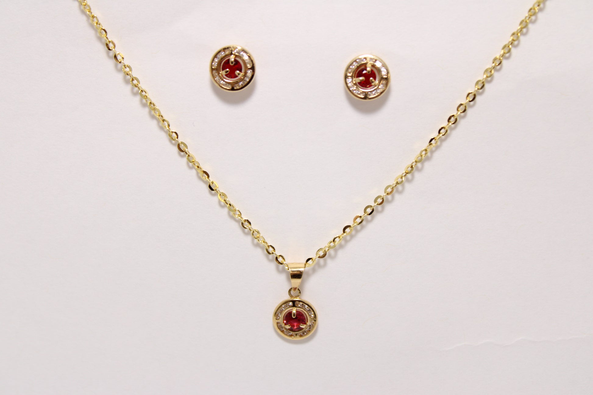 18K Gold Red Zircon Jewelry Set – Pendant, Earrings & Chain