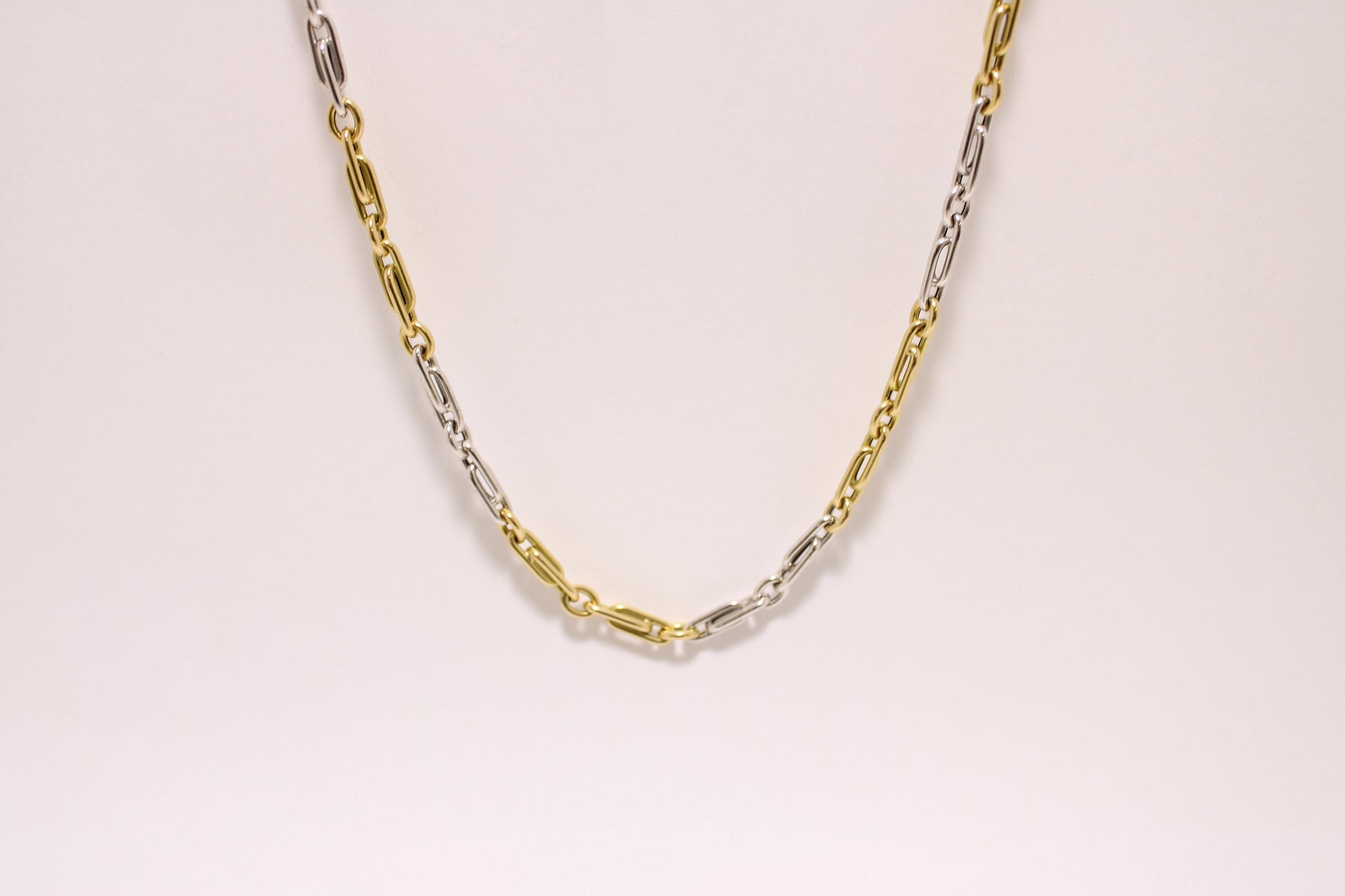 19” - 18K Two-Tone Gold Paperclip Link Chain with Round Connectors
