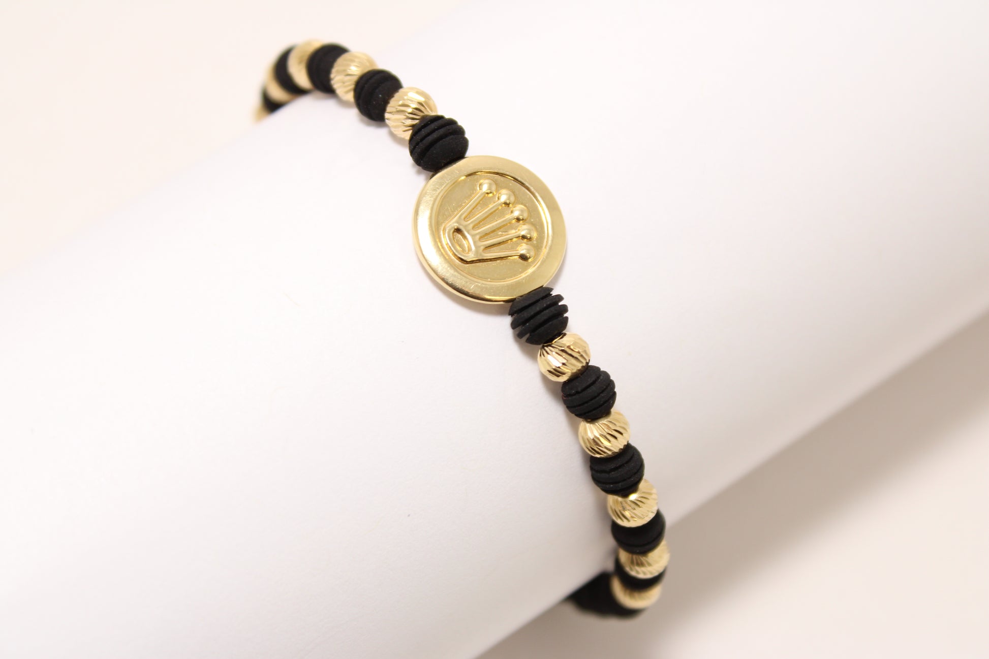 Adjustable 18K Gold Beaded Bracelet with Crown Plate