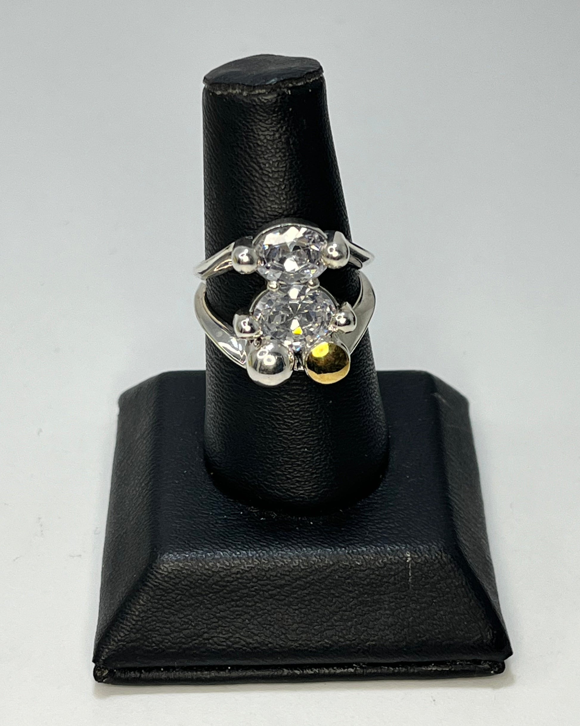 Charming cocktail ring featuring a bear crystal design in gold-silver finish. Playful animal motif with sparkling crystal accents for whimsical style.