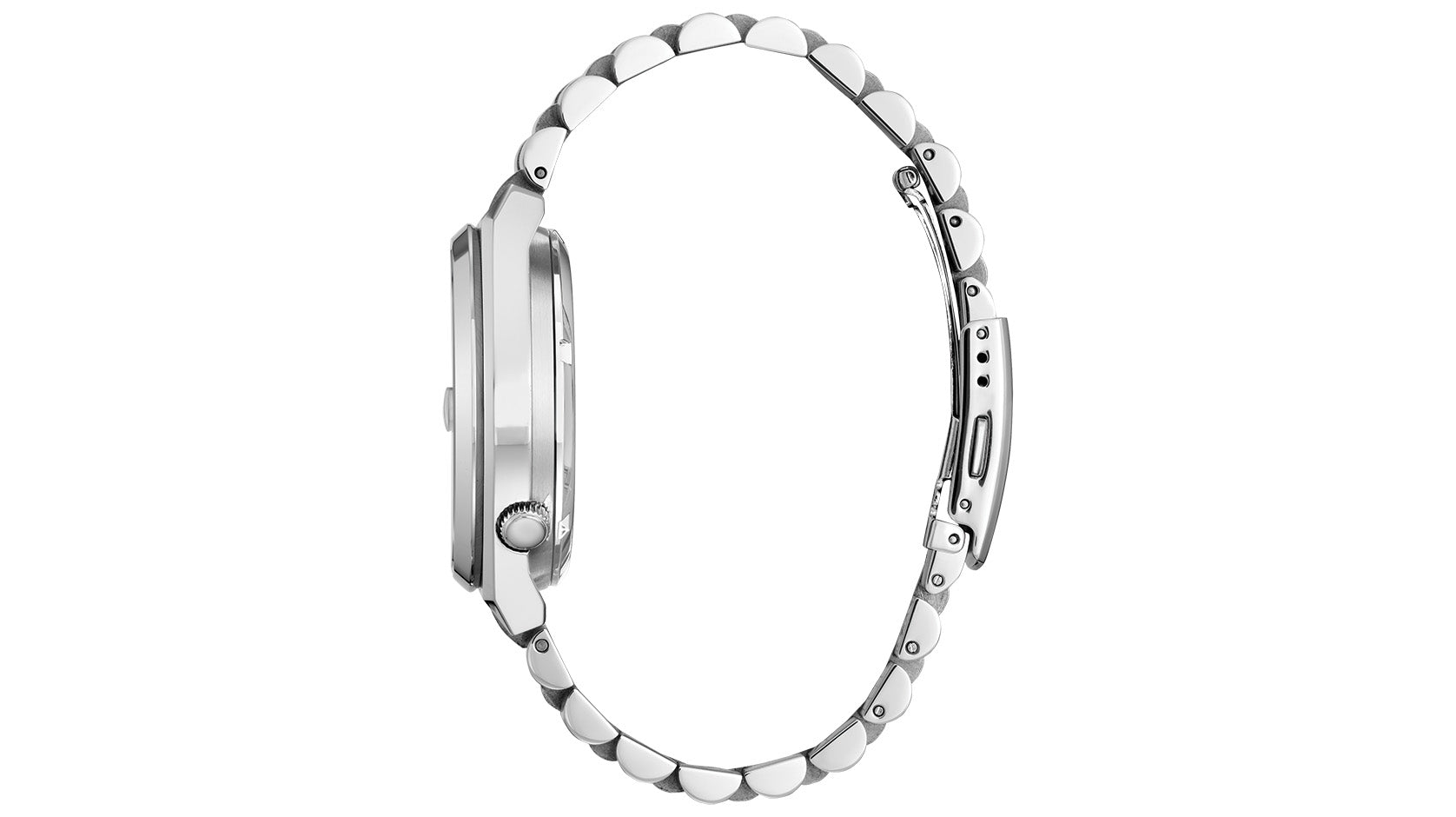 The TSUYOSA Automatic, from the NJ015 series, brings ultramodern sports styling right to your wrist. Executed in a versatile 40mm footprint, the sophisticated design of the watch makes a strong impression via a silver-tone stainless steel case and a seamlessly integrated, matching bracelet. Underneath an anti-reflective sapphire crystal, the sporty timepiece makes use of a sunray sky blue dial, with a 3 o’clock date window and contrasting silver-tone details adding to its classic aesthetic. Powered by an automatic movement and offering up to 50 meters of water resistance, the refined timepiece is a daily wearing choice ready for work, play, and everything in between. Caliber 8210.
