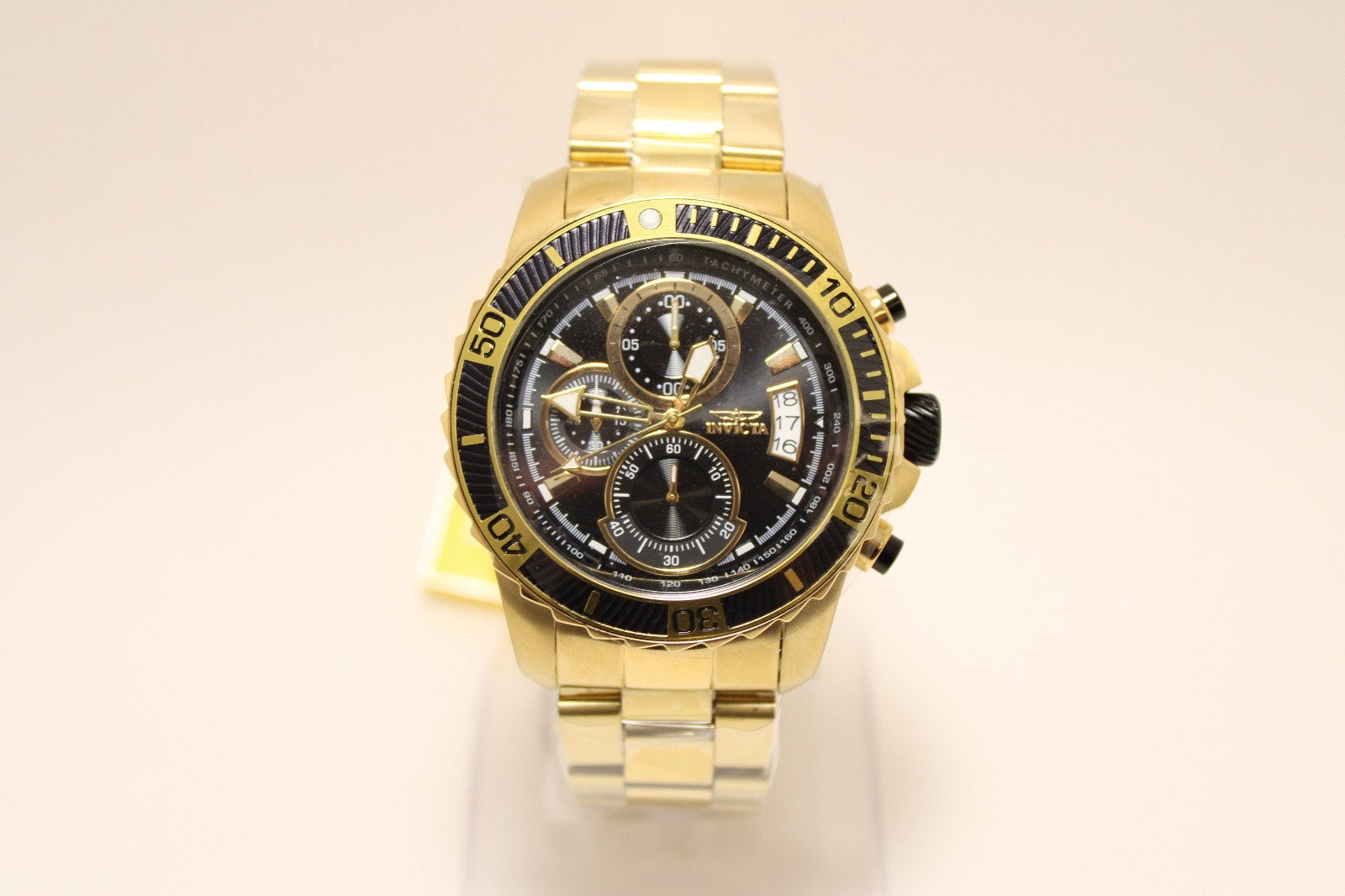 Shine with confidence wearing the Invicta Pro Diver Gold. Its radiant finish and iconic design blend elegance and durability in every detail. Bold, precise, and built to stand out, this Pro Diver adds a touch of luxury to any look. Dive into sophistication with Invicta.