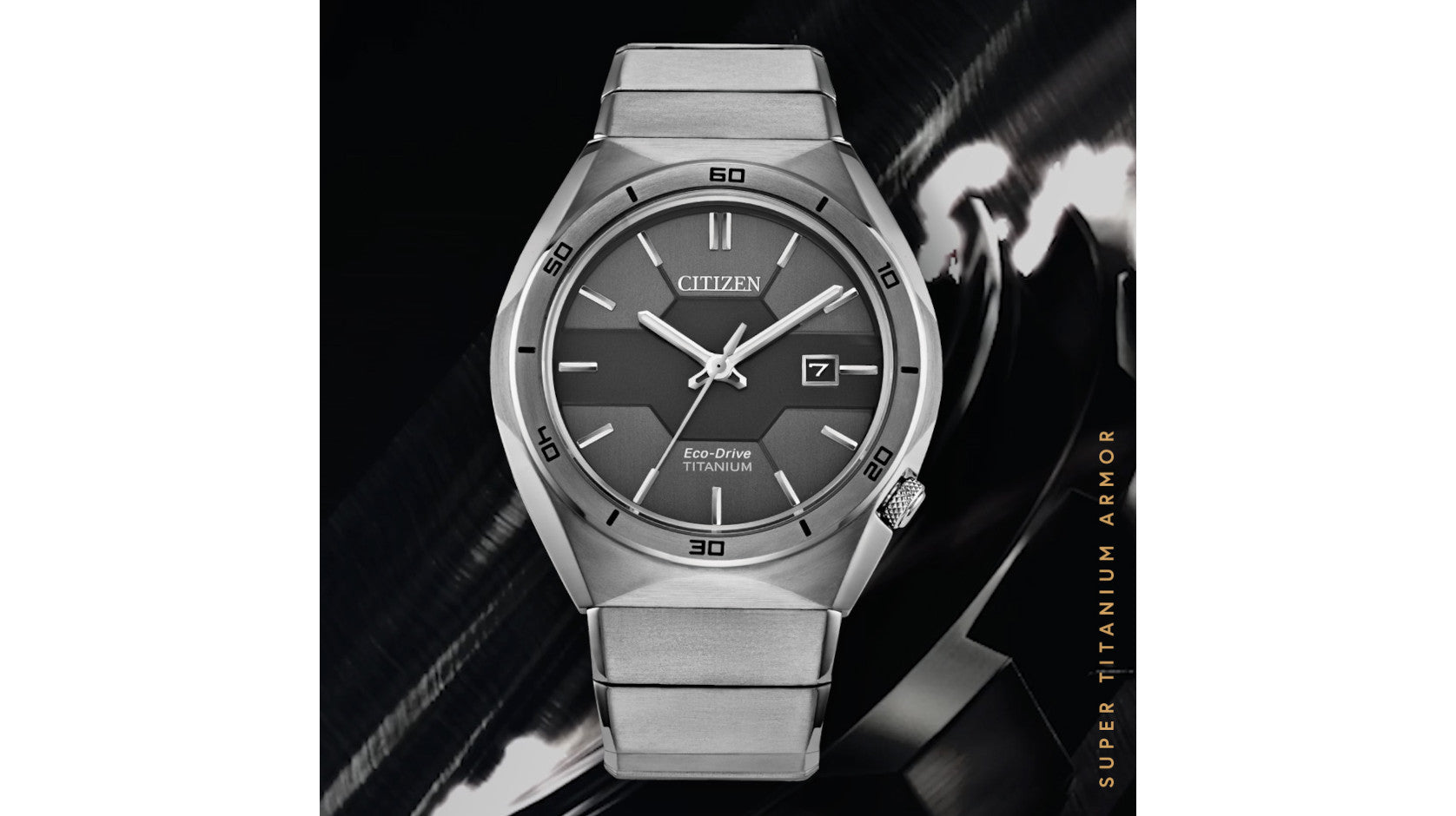 Citizen’s Armor is an Eco-Drive powered watch with a unique story. The super titanium band and case are accented by a grey dial for an evocative armor concept. This bold, sleek timepiece will always stand out from the crowd. The three-hand timepiece features a three-piece case design, making it a truly premium watch for a truly discerning man.